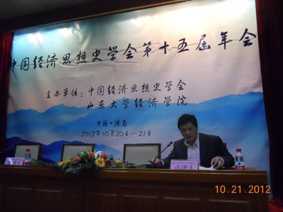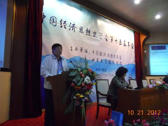 2012年10月20-21日,由中国经济思想史学会主办,山东大学麻豆av 承办的中国经济思想史学会第十五届年会在山东大学举行。来自中国社会科学院、北京大学、清华大学、北京师范大学、复旦大学、武汉大学、山东大学、上海财经大学等高校、科研院所的100余名专家学者出席了本次年会。我校麻豆av 邹进文教授、瞿商教授、朱华雄副教授、宋丽智副教授向大会提交论文并应邀参加了本次年会。与会代表围绕“中国经济思想的变迁与齐鲁文化的本土化、国际化研究”这一主题进行深入研讨,取得了丰硕的成果。中国经济思想史学会会长、武汉大学商学院严清华教授做了工作报告,并对麻豆av 经济思想史专业在2012年度获得一项中国社科基金项目(邹进文教授)、两项教育部人文社科基金项目(朱华雄教授、宋丽智副教授)进行了高度的赞扬和祝贺。