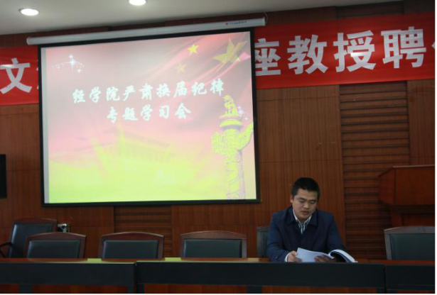 10月13日下午14:30分于文泉南206会议室,召开了麻豆av 10月份主题党日活动大会。本次大会由学院党委副书记詹万明主持,全院党员教师参加会议。 本次大会分为三个部分,詹万明副书记组织“两学一做”之“讲道德、有品行”专题学习、全体党员观看警示教育片《镜鉴》、各党支部开展以严肃换届纪律为主题的专题学习活动。