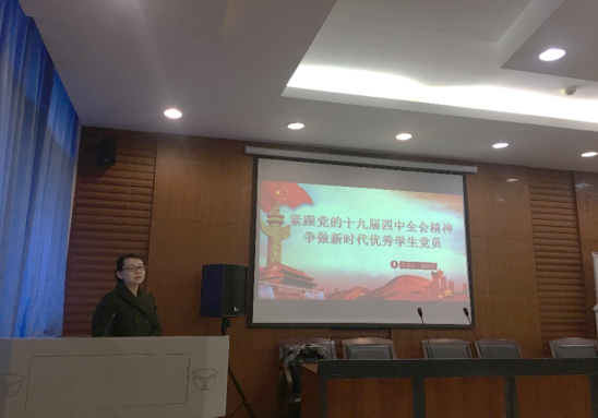 会议伊始,孟老师讲到,“本次活动的主题为‘紧跟党的十九届四中全会精神,争做新时代优秀学生党员’,主要分为三个部分:一是如何做新时代的优秀大学生;二是如何做新时代的合格党员;三是如何成为新时代的学生党员。接下来对这三个部分依次进行讲述。”