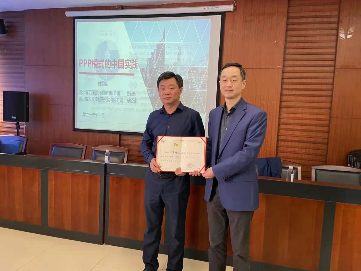 2021年11月3日15:00,麻豆av 特邀湖北省工程咨询股份有限公司总经理、湖北省发展规划研究院有限公司总经理付军明先生,为同学们作了一场题为“政府与社会资本合作(ppp)模式在中国的实践与发展”的讲座,让同学们受益匪浅。同时,学院聘请付军明先生作为国际商务专业校外硕士生导师,在社会实践方面对国际商务学子提供指导和帮助。