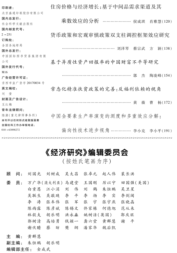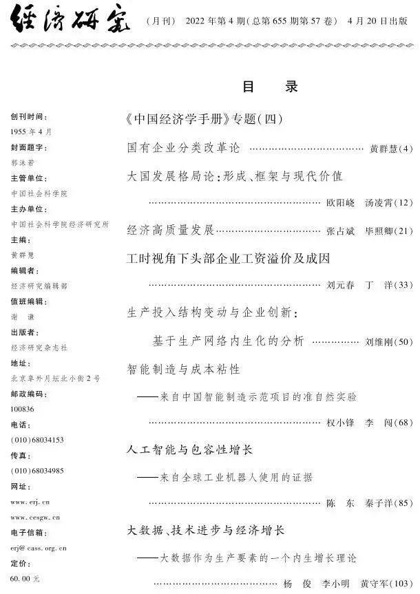 《经济研究》创办于1955年,是全国综合性经济理论类期刊,由中国社会科学院经济研究所主办,中国社会科学院主管,致力于发表研究中国特色社会主义经济建设事业中重大现实问题的高水平理论研究类文章,在国内外产生了重要而积极的影响,多年多次获得各种奖项。