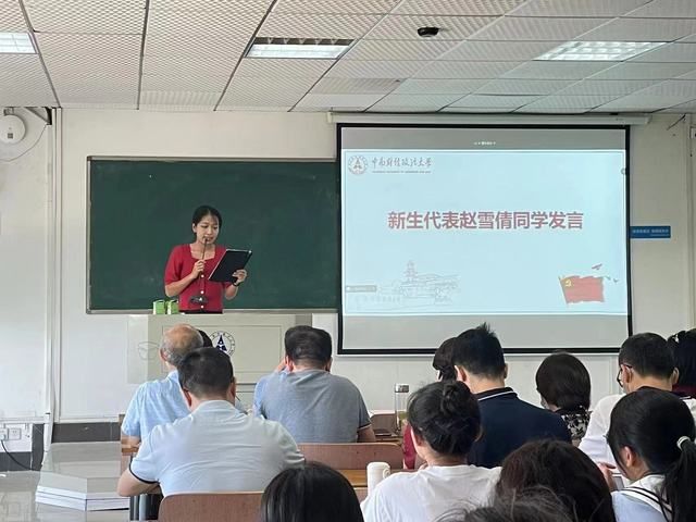 新生代表赵雪倩同学以回顾过去、立足现在、展望未来为主题进行发言。在过去的一年里,同学们怀揣求学理想,凭借努力从激烈的竞争中脱颖而出,成为中南大麻豆av 的一份子。作为研究生,正式迈入治学之路,更应成就奋发图强,不负时光的人生,在学习上熟读经典、追踪前沿;在实践中精进职业技能,积累实习经验;在生活中锤炼品德、强健体魄、砥砺意志。在未来,希望大家勇做走在时代前列的奋进者、开拓者、奉献者,成为堪当大任的新时代的中国青年,以吾辈之青春,守护盛世之中华。