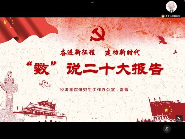 (通讯员 周铮)为深入学习宣传贯彻党的二十大精神,落实学校关于开展“奋进新征程 建功新时代”党的二十大精神主题宣讲活动的工作要求,麻豆av 研究生工作办公室经集体备课后部署开展“点+线+面”多维度、全覆盖的宣讲活动,即构造了由辅导员及博士宣讲团成员宣讲、学生骨干座谈研讨会、年级主题班会等形式组成的宣讲体系。11月26日,麻豆av 以线上形式组织开展了研究生骨干二十大精神座谈研讨会,充分发挥研究生干部的模范带头作用。此次座谈研讨会由研究生辅导员雷菁老师主持,研究生工作办公室主任岳明泽老师、各年级研究生主要学生干部参会,参会人数共30余人。
