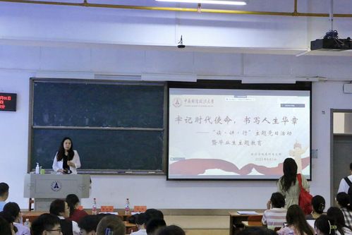 学思想,青年党员要牢记党的教诲。周琼老师引用习近平总书记在考察中国人民大学考察时的讲话,鼓励青年党员深入学习领会习近平总书记关于教育工作和青年成长成才重要论述,从党的百年奋斗重大成就和历史经验增长智慧、增强信心,激发责任担当,切实将中华民族宝贵精神财富转化为毕业生爱党报国的实际行动,不负韶华,不负时代,不负人民。