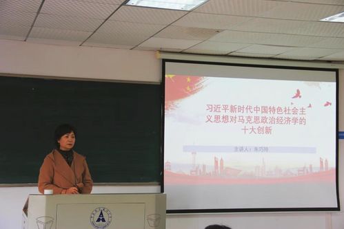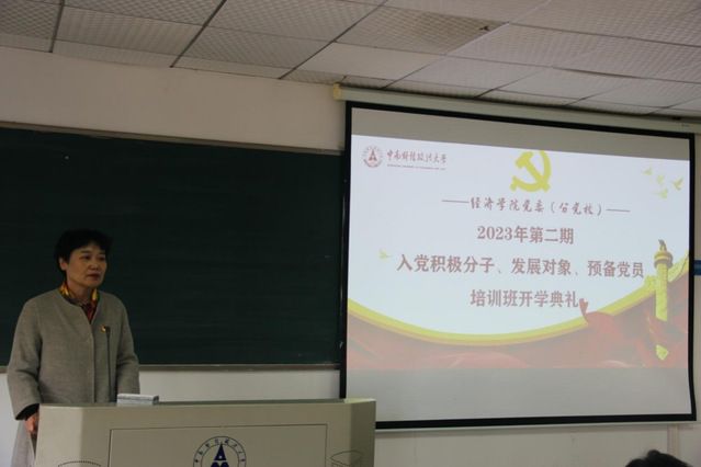开班典礼结束后的第一堂党课是由朱巧玲老师讲授,题目为《习近平新时代中国特色社会主义思想对马克思主义政治经济学的十大创新》,朱巧玲教授从学习贯彻习近平新时代中国特色社会主义思想主题教育工作会议引入,为同学们传达了此次主题教育要牢牢把握“学思想、强党性、重实践、建新功”的总要求。从精准把脉中国国情到推动全面深化改革,并从国有企业发展目标、社会主义经济发展目的、“五大发展理念”以及中国社会主要矛盾的转变等十个方面,朱老师详细介绍了习近平新时代中国特色社会主义思想对马克思主义政治经济学的十大创新的深刻内涵,为大家带来了一节丰富又深刻的党课。
