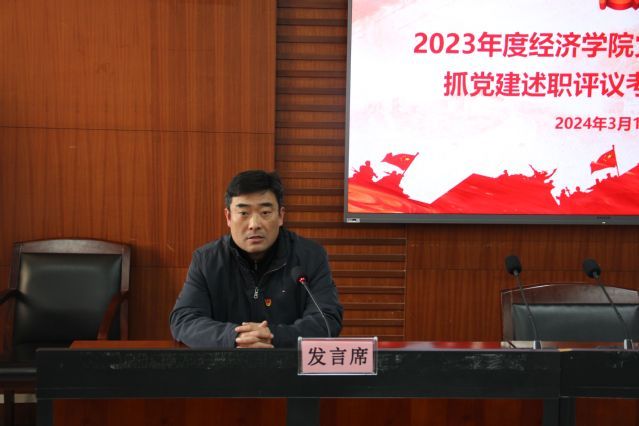 会前,根据学院党委要求,各党支部书记撰写了抓党建工作述职报告。会议现场,经济学党支部、国际经济学党支部、西方经济学党支部以及行政党支部的党支部书记依次作了现场述职。其余10位学生党支部书记作了书面述职。