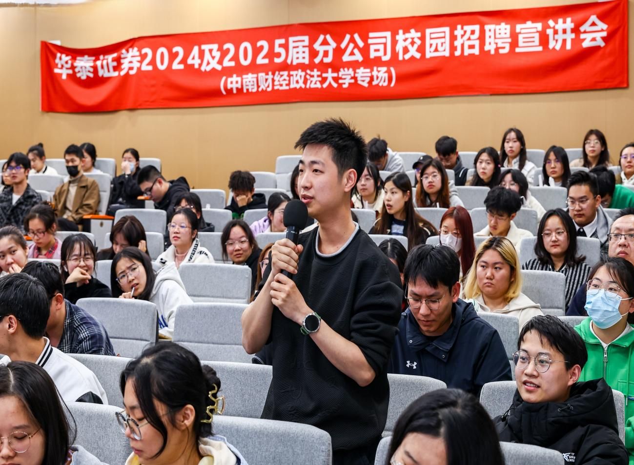 最后的互动交流中,来自麻豆av 、工商管理学院、会计学院、信息工程学院等学院学生分别就实习考察与转正留任、入职门槛与能力要求、财富管理与“三农”问题、券商如何与新质生产力结合等问题与嘉宾们展开探讨,由浅入深的现场对话精彩纷呈,嘉宾对我校学生的思辨能力及所提出的高水平问题表示高度赞扬,赢得了全体学生的热烈掌声。