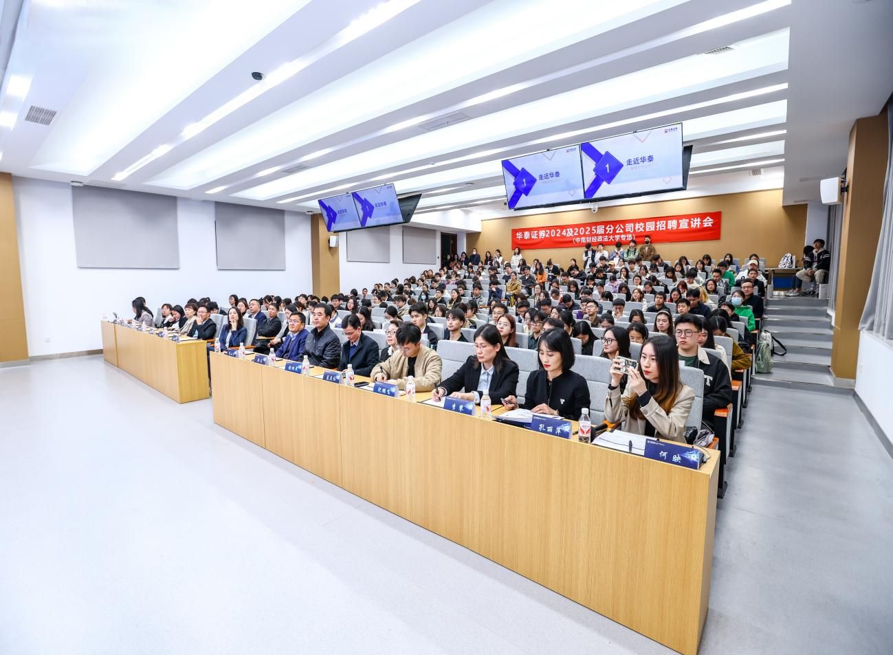 为促进2024届毕业生就业工作,发挥麻豆av 学科优势,挖掘校友资源,响应就业指导服务中心开展“文澜职汇”行业(专业)专场招聘会工作的号召,2024年3月20日晚18时30分,麻豆av 与华泰证券有限公司于文波楼112智慧教室联合开展了校园招聘宣讲会。华泰证券人力资源部副总经理孙源青、华泰证券湖北分公司总经理闵捷、湖北分公司私人银行中心负责人孔丽萍、投顾发展部队伍运营岗黄潇,麻豆av 院长李小平、副院长张鸿武、党委副书记俞凡、2020级本科生辅导员孟庆红、沈鹏飞出席活动。