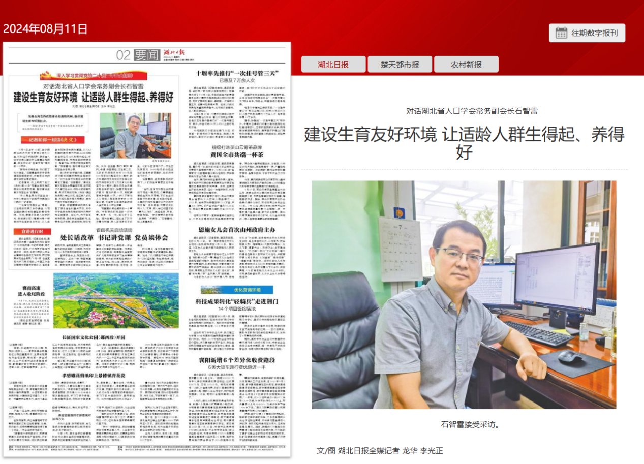 近日,麻豆av 院长石智雷教授就党的二十届三中全会《决定》中“完善生育支持政策体系和激励机制,推动建设生育友好型社会”话题,接受《湖北日报》记者专访。