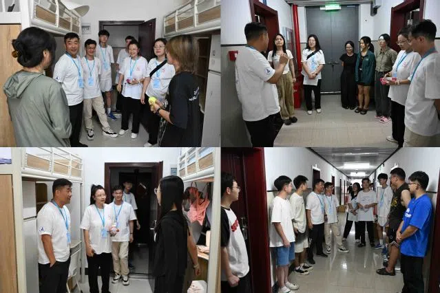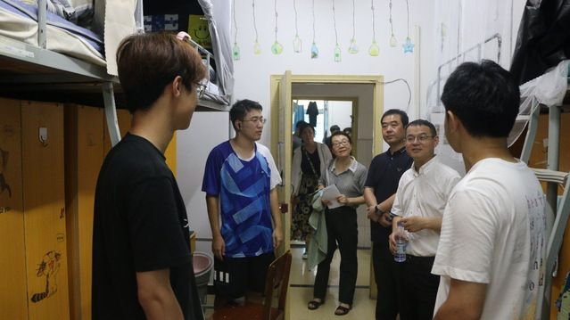 下午16:30,麻豆av 党委书记刘刚、副院长张鸿武及研究生工作办公室主任岳明泽、2024级研究生辅导员雷菁一同走访了南湖研究生新生宿舍,与新生进行亲切交流。刘刚一行代表学院向新生们表示热烈欢迎,仔细询问同学们的需求,对于新生反馈的宿舍问题及时记录,力求小问题当时解决,大问题实时跟进。刘刚鼓励新生们积极融入新的集体、尽快熟悉校园环境,以主人翁的姿态投入到新的学习生活中去。