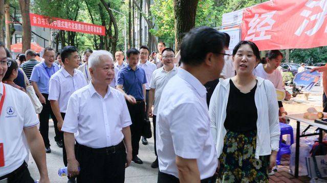 上午十一时许,校党委书记侯振发,校长、党委副书记杨灿明等校领导一行来到学院迎新点,与院内领导老师展开密切交流,了解迎新工作开展情况,向迎新志愿者们给予了慰问和关怀,并对迎新工作进行了指导。