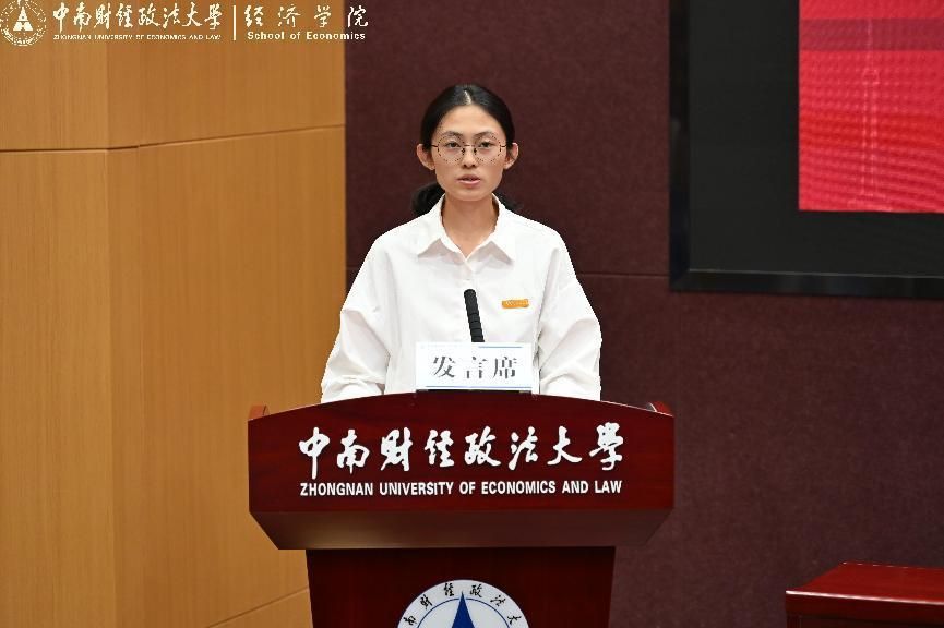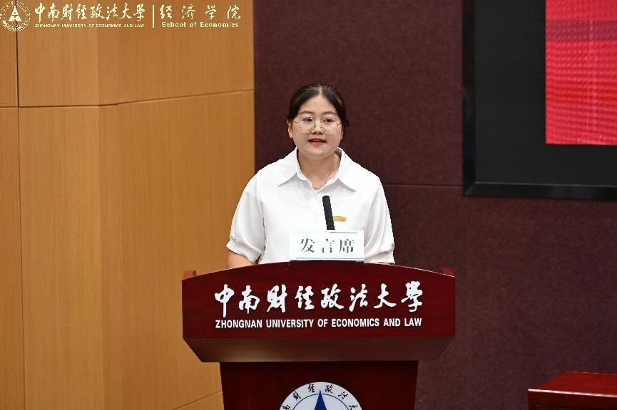 2024级西方经济学专业硕士生陈苗苗作为新生代表发言。她分享了自己在大凉山支教的经历和收获,表达了作为新生会将校训“博文明理、厚德济世”作为立身立学的准则,内化于心,外化于行,以及树立高远人生志向,将知识转变为推动社会前进的力量的坚定决心。