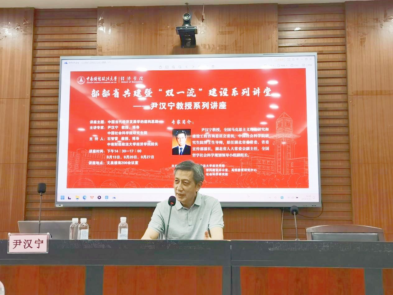 尹汉宁教授系全国马克思主义理论研究和建设工程咨询委员会委员,中国社会科学院研究生院博士生导师,原任湖北省委常委、省委宣传部部长,湖北省人大常委会副主任,全国哲学社会科学规划领导小组副组长。尹汉宁教授以“中国当代经济发展学的建构思路”为主题,分享了中国当代经济发展的知识体系框架。