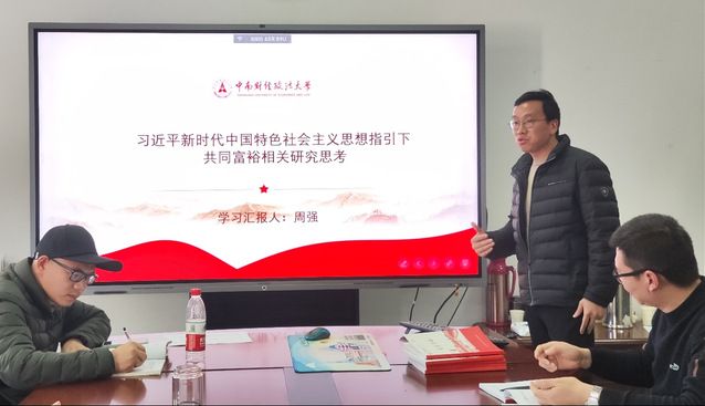 活动伊始,支部书记袁华锡带领大家认真学习了习近平总书记关于共同富裕的重要讲话和指示精神,深入探讨了共同富裕目标的丰富内涵及其实现路径。他指出,共同富裕既是经济上的富裕,更是社会公平与生态文明的综合体现,需要在城乡融合发展、区域协调发展等方面不断努力。他还强调,支部教师应以党建引领,充分结合教学科研实际,将共同富裕思想融入具体实践中,为社会发展贡献智慧。