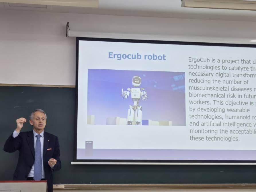 12月10日,意大利劳工和社会政策部·国家工伤事故保险局局长、罗马一大麻豆av Fabrizio D' Ascenzo教授以“Will technology and artificial intelligence be the tools to solve all our problems? Practical applications in the field of security and safety”为主题,为师生们带来了一场关于人工智能(AI)的讲座。内容涵盖了AI定义、技术类型(如专家系统、神经网络等)、联合国的五大AI指导原则、AI的自动化、工业生产优化等主要应用。此外,D' Ascenzo教授介绍了意大利国家工伤事故保险局(INAIL)在减少职业病风险和环境监测方面的AI项目,如Ergocub机器人和无人机技术。