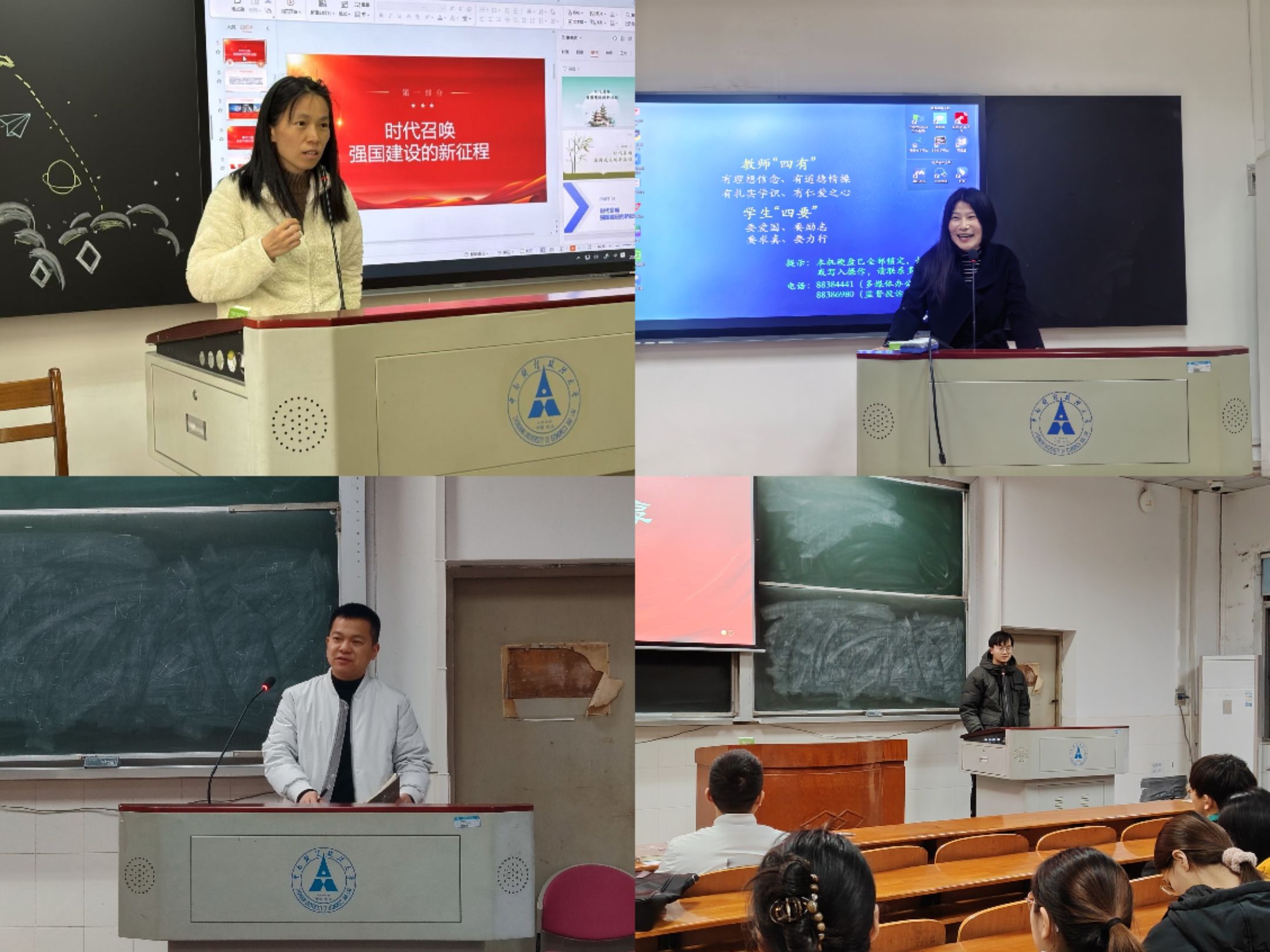 2024级经济学、数字经济专业各班相继开展了“强国建设、青年何为”主题班会,同学们围绕党的二十大和二十届二中、三中全会、全国两会精神,就寒假社会实践、课程学习方法、春节见闻、高中与大学差异等内容展开了交流分享。2024级本科生辅导员沈鹏飞、班级导师叶琴、王静、张麒参与班会。