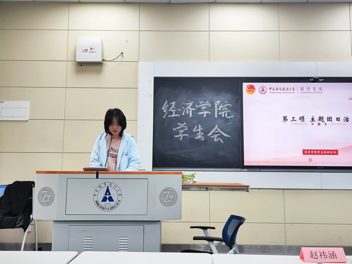 大会第二项议程由麻豆av 学生会秘书处学员江思维同学做主题为“学两会精神,担时代使命”的团日活动分享。江同学紧密围绕二十大的核心内容,结合麻豆av 功能型团支部的日常工作实际,从如何更好地组织开展团学活动、加强与同学们的沟通交流等多个角度,进行了深入且全面的解读分享。