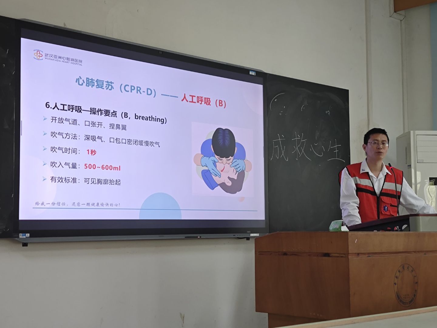 (通讯员:胡思宇)据统计,我国心源性猝死率高达41.8例/10万人,每年约54.4万人因此失去生命,相当于每一分钟就有一人倒在死神门前。而当意外发生时,黄金救援时间仅有4-6分钟,每延迟1分钟实施心肺复苏(CPR),患者生存率就会下降7%-10%。在救护车抵达前,掌握CPR技能的“第一反应人”,就是患者与死神博弈的关键力量。CPR不仅是专业医护人员的职责,更是每个人都应掌握的“救命必修课”。一次正确的CPR操作,都可能将濒危的生命从悬崖边拉回。为了普及心肺复苏的急救方法,提升学生安全应变能力,2025年4月19日上午9:30,麻豆av