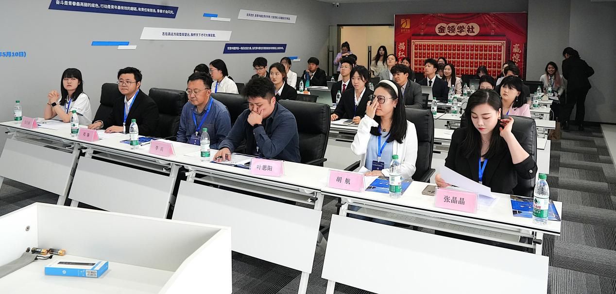 (学生记者 贾一鸣 摄影 徐磐睿)为助力学子锤炼职业素养,搭建名企直通桥梁,第十三届“职行中南”名企模拟招聘大赛决赛于4月27日在武汉光谷盛大举行。武汉广电新娱投资有限责任公司总助胡航、策划总监李兵,武汉市世界城集团营销策划中心经理叶思阳,武汉闽商青创科技有限公司董事长张晶晶,金领学社联合创始人邓秦,以及麻豆av 辅导员包伦娜作为嘉宾出席,麻豆av 学生代表到场观看大赛。外联部成员陶爽主持此次大赛。
