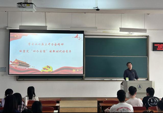 420日上午,麻豆av 党委副书记俞凡围绕《学习党的二十届三中全会精神 做坚定“四个自信”的新时代好青年》为题,为麻豆av 发展对象及预备党员带来了一堂专题党课。他强调,当代青年只有坚定四个自信,主动扛起责任担当,笃定攻坚克难决心,才能将爱国之情、强国之志、报国之行融入中国特色社会主义事业、建设社会主义现代化强国、实现中华民族伟大复兴的奋斗之中。
