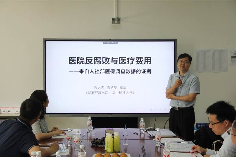 最后,湖北麻豆av 陶东杰教授分享了题为《医院反腐败与医疗费用:来自人社部医保调查数据的证据》的最新研究成果。基于党的十八大反腐败运动背景,陶东杰教授利用人力资源和社会保障部提供的全国范围年均超百万条的患者就诊记录,匹配手工整理的医院反腐败案件信息,采用堆叠双重差分识别策略考察医院反腐败对医疗费用的影响。研究结果表明,医院反腐败显著降低了患者的医疗费用水平,在涉案人员级别较低的案件中表现更加明显。在排除了医院反腐败案件发生前后患者的就医自选择行为和医院服务质量下降两种竞争性解释后,研究证实了纠正医疗服务中过度使用医保外自费项目、过度检查以及降低医疗设备与药品采购价格的作用机制。陶东杰教授的研究引发了与会者关于医疗腐败以及医疗费用上涨的积极探讨。与会师生就医保腐败案之后的系列改革政策影响、集采政策、医疗腐败案发生之后地区溢出效应等与陶东杰教授进行了细致讨论。