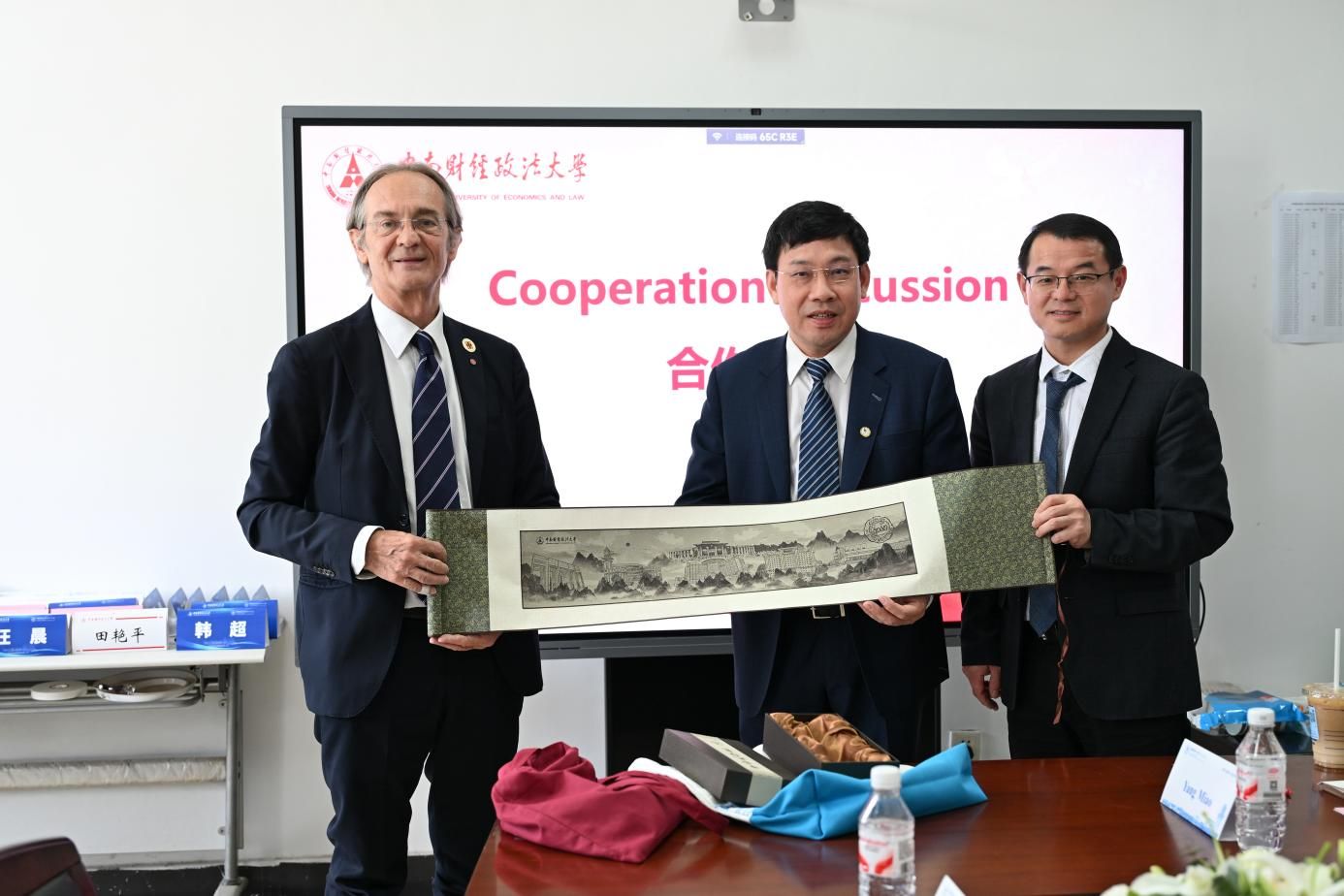 意方Domenico Dursi副院长和Fabrizio D’Ascenzo教授。本次交流双方秉持积极、开放的态度,一致认同以两校现有合作框架为基础,扩大两校的合作范围,就深化经济学学科合作达成高度共识。双方就课程合作、联合培养、学生交换、学者互访、共办论坛等合作方向充分交换意见。