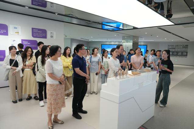 最后,全体成员跟随讲解员前往武创院成果展示厅进行参观学习。2024115日,习近平总书记考察武创院时指出:“实现高水平科技自立自强、发展新质生产力,对科技创新和产业创新融合提出了更为迫切的需求。”师生们通过科技创新供应链平台成功案例和实景展区,深入了解了武创院在电子信息、生命健康等领域的科研成果与创新实践,看到了科技创新与产业发展的深度融合,让师生们对创新驱动发展战略有了更深刻的认识。