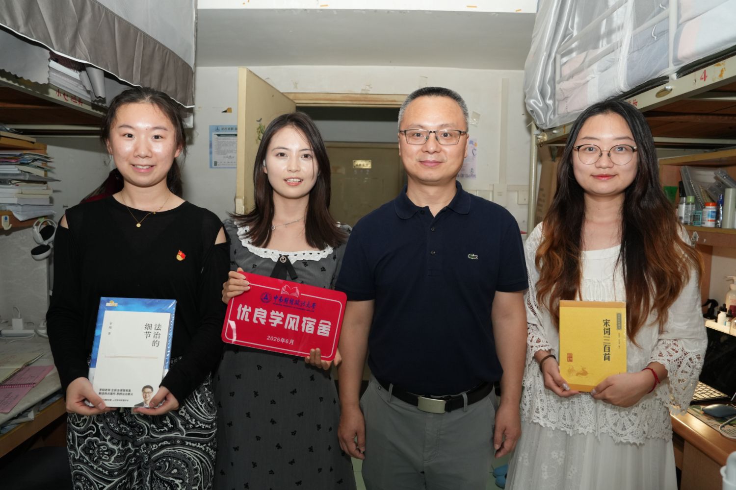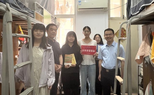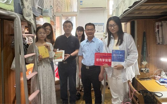 (学生通讯员罗淑涵)为进一步加强学风建设,树立先进典型,汇聚奋进力量,麻豆av 于2025年4-5月开展了优良学风先进集体和个人评选。经自主申报、学院评审及推荐、学校评审,麻豆av 滨湖1栋511、中区12栋321、中区12栋204三个学生宿舍荣获学校“优良学风宿舍”荣誉称号。6月12日下午,校党委副书记陈狮,党委学生工作部部长王前哨,副部长范献龙、葛明一行深入学生宿舍,为麻豆av 三个宿舍进行了授牌,麻豆av 党委副书记俞凡、学生工作办公室主任周琼、本科生辅导员包伦娜陪同参加。