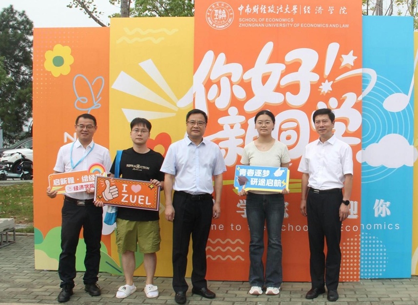 (侯振发书记、朱方伟校长和石智雷院长与研究生新生合影)