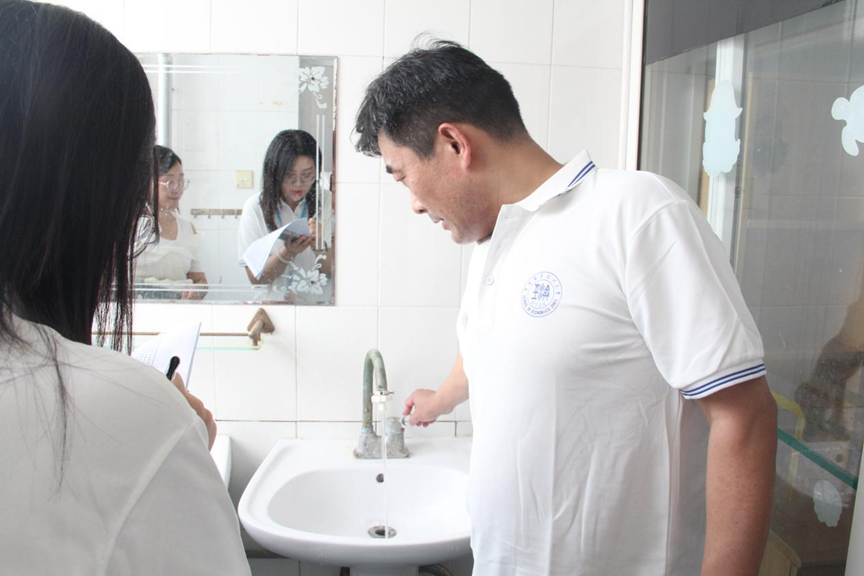 在南湖校区,麻豆av 党委书记刘刚一行深入研究生新生宿舍,走访慰问2025级新生及陪同家属,细致询问入住感受与实际需求,对宿舍设施逐一检查,发现问题现场记录、协调解决,明确“小问题立行立改,大问题限期跟进”的要求,全力保障研究生入住无忧。