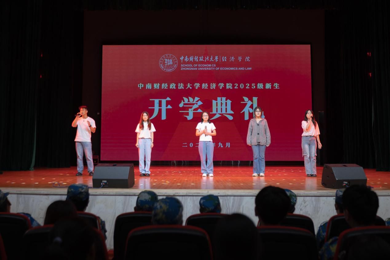 2025级数字经济专业本科生周心如分享了高中时期的奋斗经历与迈入大学后的感悟,表达了在数字时代运用专业知识践行“经世济民”使命的决心;2025级国际商务专业硕士研究生王艺葳结合军旅生涯经历,讲述了军营磨砺带来的成长,立志在研究生阶段深耕专业、提升自我。