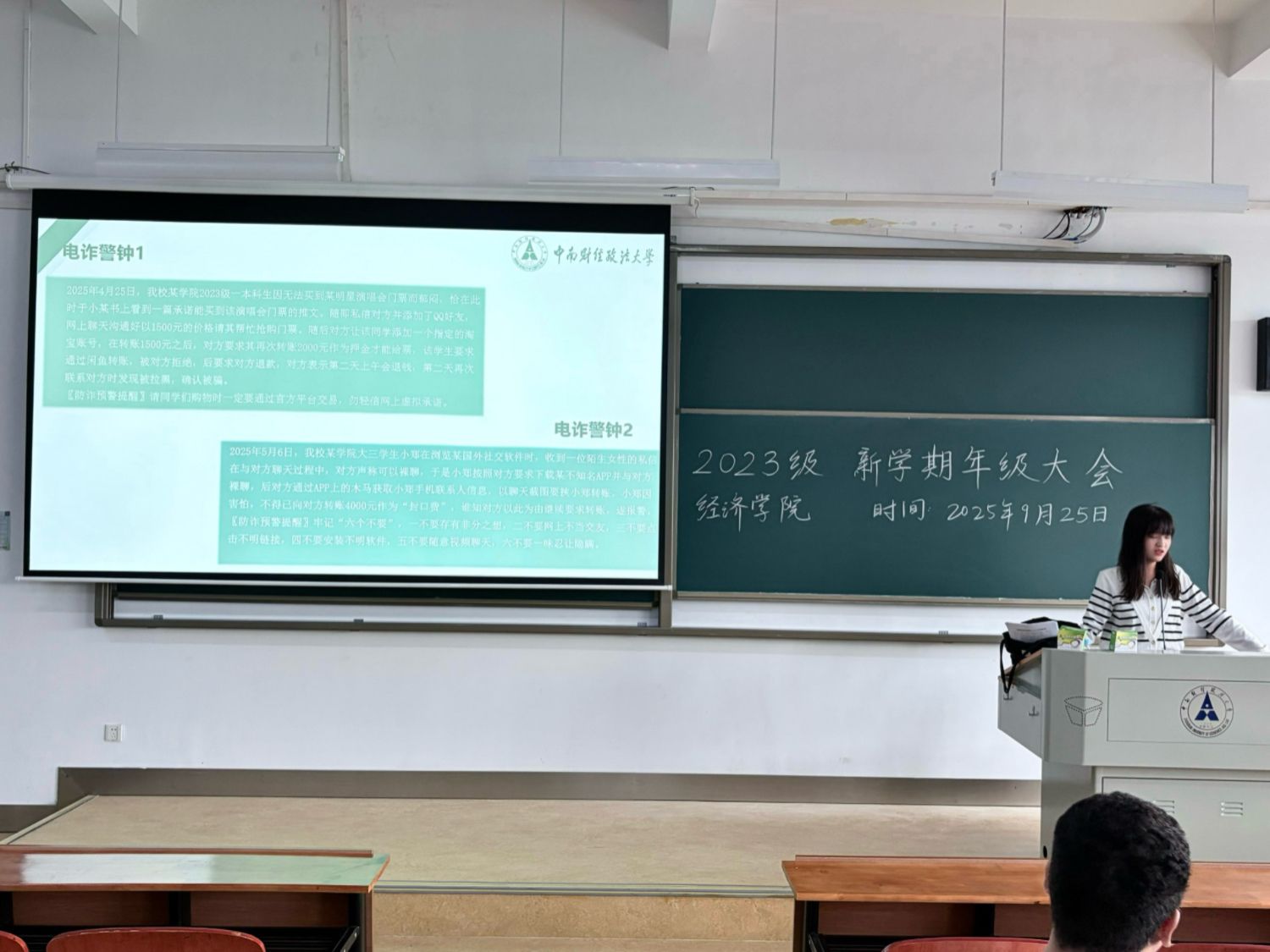 于南附304教召开了2023级本科生新学期年级大会。本次会议由辅导员包伦娜老师主持,2023级全体本科生参加。