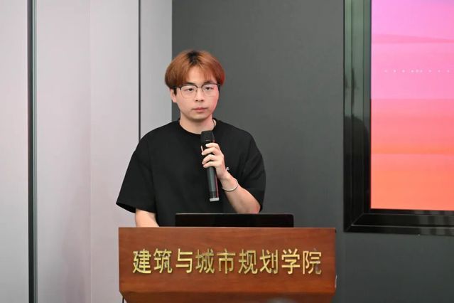 在第二项议程中,建筑与城市规划学院研究生党建工作中心负责人高炀洋详细介绍了学院研究生党建工作体系、党员先锋服务队的实践成果以及党建创新赋能的探索过程。