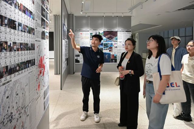 在本次联合主题党日活动正式开始前,高亚群老师带领麻豆av 师生参观了建筑与城市规划学院党建文化长廊,简要介绍了学院的党旗领航工程,并带领师生参观了学院举办的万里茶道建筑遗产与茶文化双主题展。