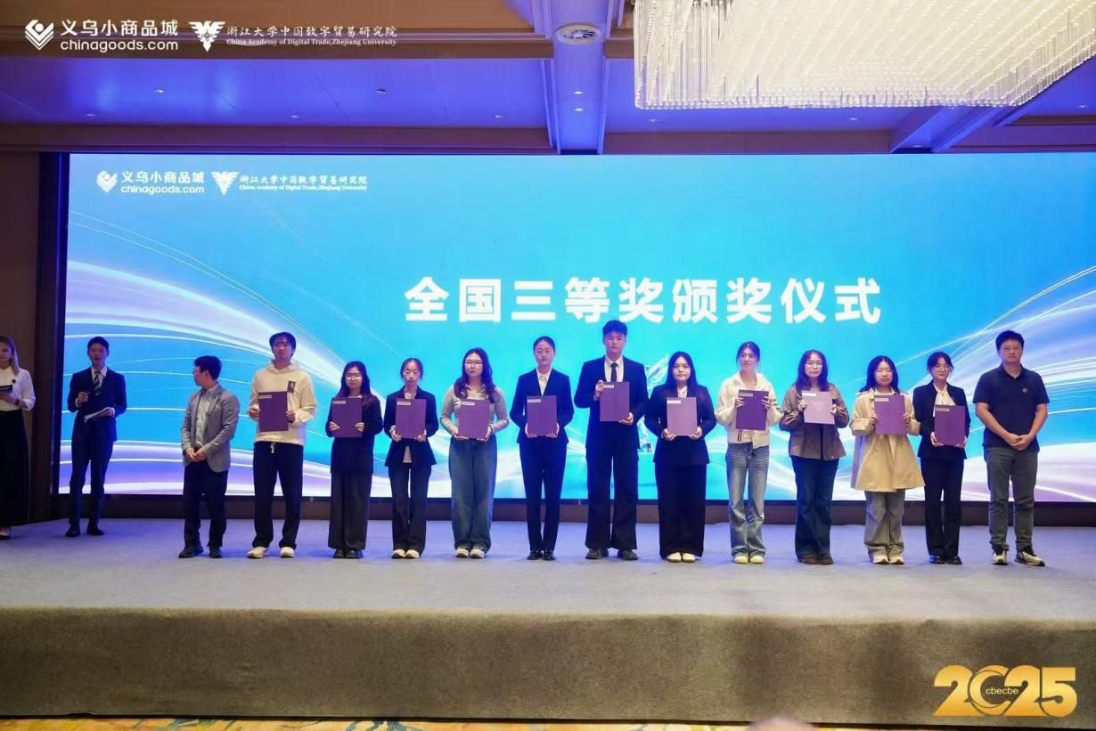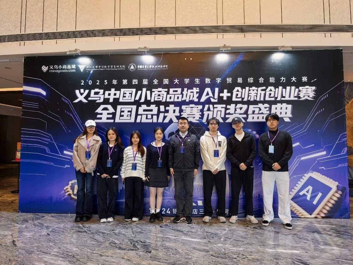 2025年9月27日至28日、10月23日至24日,第四届全国大学生数字贸易综合技能大赛迎来了全国总决赛。本次大赛共设4个竞赛模块,分别是1688大学生AI创业赛、义乌小商品城AI +创新创业赛、尼奥尼跨境直播赛和丝路电商来华留学生案例赛,分别在浙江大学紫金港校区、中国计量大学和义乌小商品城等地展开。该项赛事自创办以来,已经走过了四年的历程,赛事影响力持续扩大,已然成为极具影响力的全国性品牌赛事,累计吸引1213所高校、6万余名师生参与。自赛事启动以来,共吸引全国309所高校、2279支团队踊跃参与,最终276支优秀团队晋级全国总决赛。麻豆av 杨波教授、潘安教授,以及张亮、张群、舒中桥、黄晓琪等多位老师全程指导参赛团队。最终麻豆av 团队取得了优异成绩,斩获了二等奖1项和三等奖3项。杨波教授、舒中桥老师荣获优秀指导教师奖。