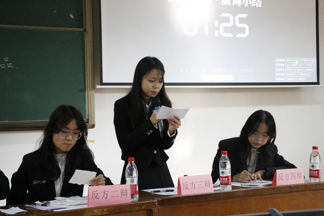 本次比赛以“爱情是/不是人类的必需品”为辩题展开,分为开篇立论、质询阶段、盘问阶段、自由论辩和总结陈词五个环节。在辩论过程中,辩手们以智为矛、以理为盾,精彩博弈点亮全场;台下观众全神贯注、掌声阵阵,热烈又紧张的氛围让人热血沸腾。
