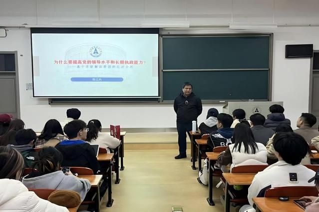 11月8日晚,马克思主义学院周术国副教授以《习近平新时代中国特色社会主义思想的核心要义与精神实质》为题,以党的二十届四中全会精神为切入点,通过各种精彩案例深入浅出地剖析了“十个明确”“十四个坚持”的核心内涵,并阐释其现实意义与当代价值,号召同学们为实现中华民族伟大复兴的中国梦而不懈奋斗。
