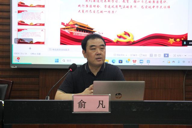 随后,俞凡副书记为毕业生党员进行深入贯彻中央八项规定精神学习教育。他从“廉”字的由来和典故到影视作品和现实经典案例,充分而形象地论证了清正廉洁是我们中国人一直以来追求的从政美德,是中国共产党人的政治本色。在实现第二个百年奋斗目标的关键历史时期,当代青年人更应深刻认识反腐败斗争的长期性,保持清醒头脑,筑牢拒腐防变防线。