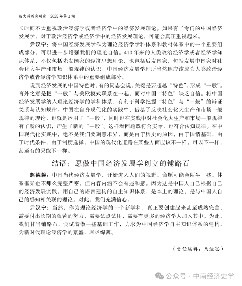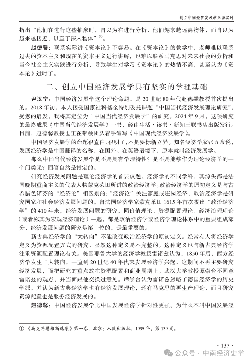 赵德馨,尹汉宁:创立中国经济发展学正当其时