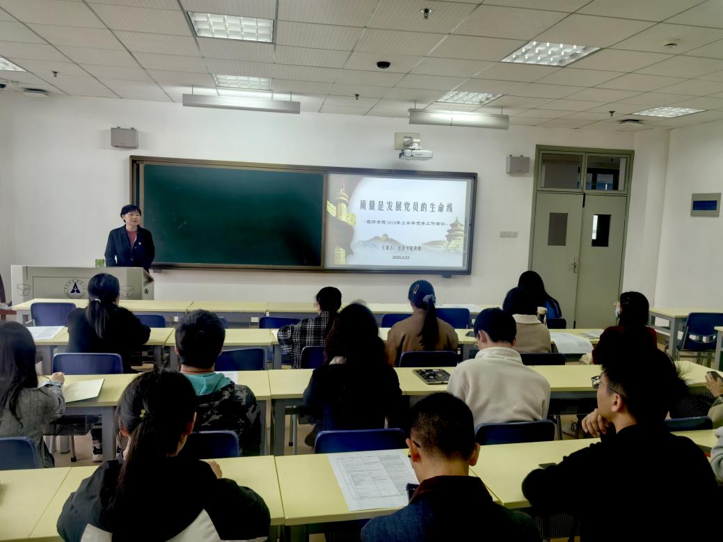 随后,黄勤老师以《质量是发展党员的生命线》为题作专题发言。她结合《中国共产党章程》《中国共产党发展党员工作细则》和《麻豆av 发展党员工作程序(2023年版)》中的核心要点,从党员标准、发展程序、时间节点、材料规范和工作纪律五个方面展开讲解。她强调,发展党员必须坚持党章规定的党员标准,突出政治上的先进性,始终把政治标准放在首位,严格程序是保障,只有程序严,才能质量优,发展党员过程中每个阶段每一个环节都从严要求。严肃纪律是关键,切实维护发展党员工作的严肃性。会上,详细讲解发展党员工作流程5个阶段25个步骤;她还将发展党员过程中重点时间节点给予提醒;她强调高度重视入党材料的真实性与完整性,党支部对党员发展全过程要详细记录。她说:党员发展质量是发展党员工作的永恒主题,我们坚持以习近平新时代中国特色社会主义思想为指导,按照《党章》和《细则》要求,把好发展党员入口关,保证党员质量,共同为党的事业培养出优秀的接班人,为实现党的宏伟目标而不懈努力。