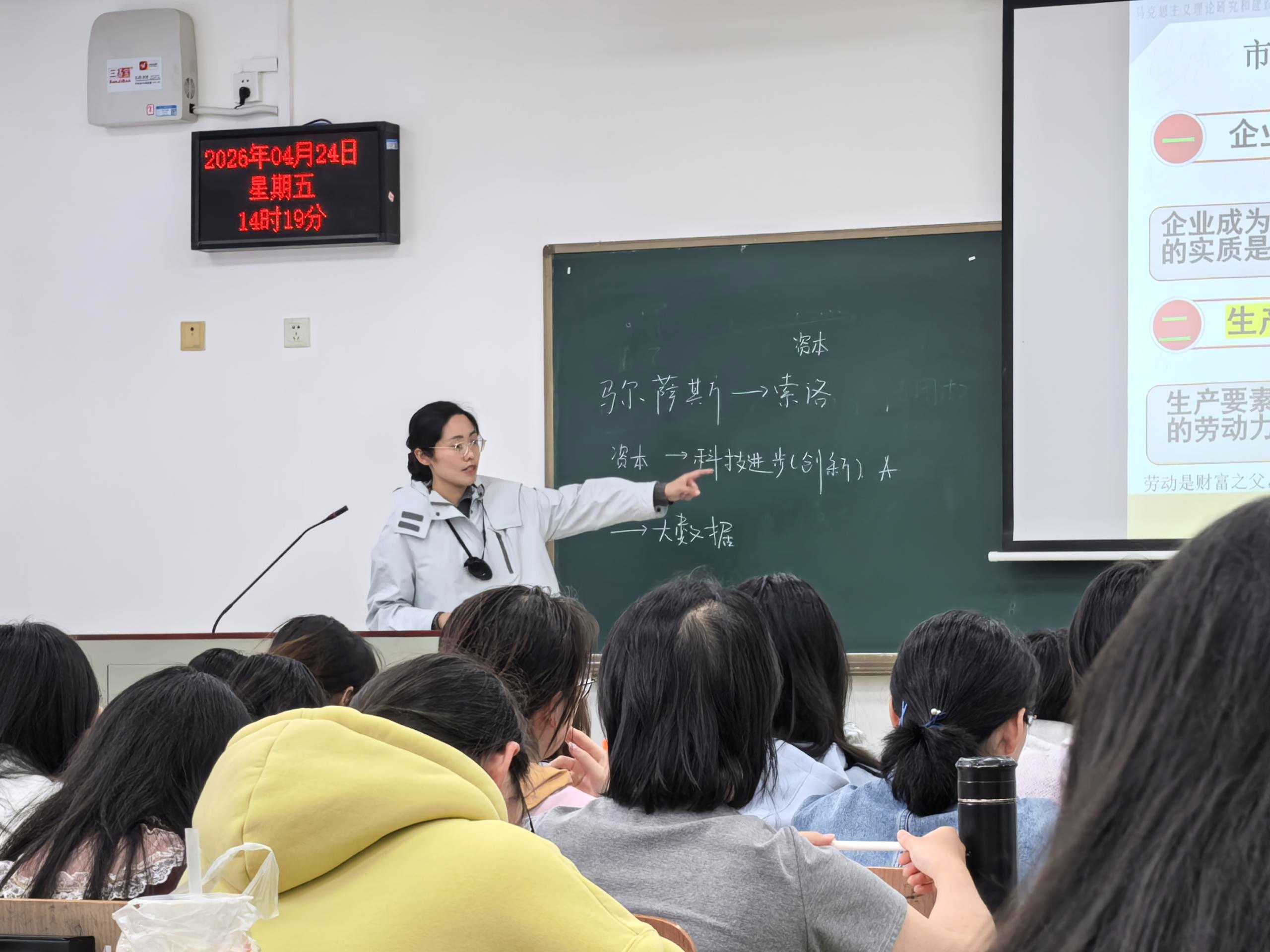课堂上,李业梅老师将政治经济学理论与思政要点紧密结合,用平实语言讲清市场经济运行逻辑,把习近平经济思想与“十五五”规划部署转化为可理解、可运用的专业知识。同学们围绕市场机制、价值规律、市场监管等内容展开讨论,结合现实经济案例分享体会,有效提升了分析经济现象、解决实际问题的能力。